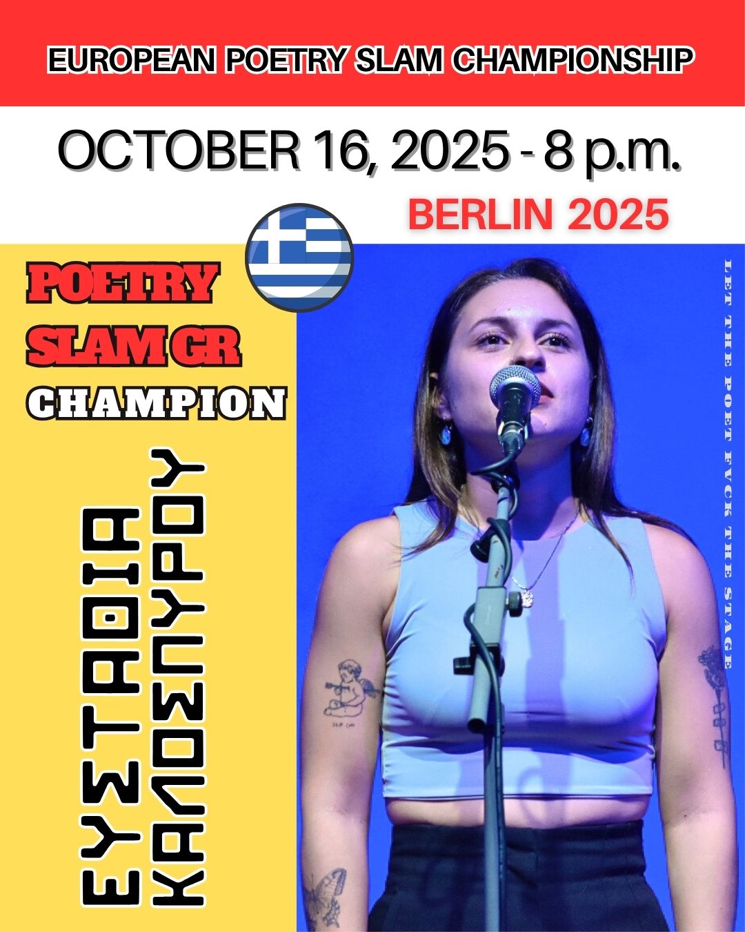 Στις 16-18 Οκτωβρίου 2025, η Ευσταθία Καλοσπύρου θα συμμετάσχει στο Πανευρωπαϊκό Πρωτάθλημα Ποίησης Σλαμ στο Βερολίνο και αν καταφέρει να είναι μέσα στα 10 άτομα με την υψηλότερη βαθμολογία, θα συμμετάσχει και στο Παγκόσμιο Πρωτάθλημα στη Νότια Αφρική το φθινόπωρο του 2026, αντιπροσωπεύοντας την Ελλάδα.